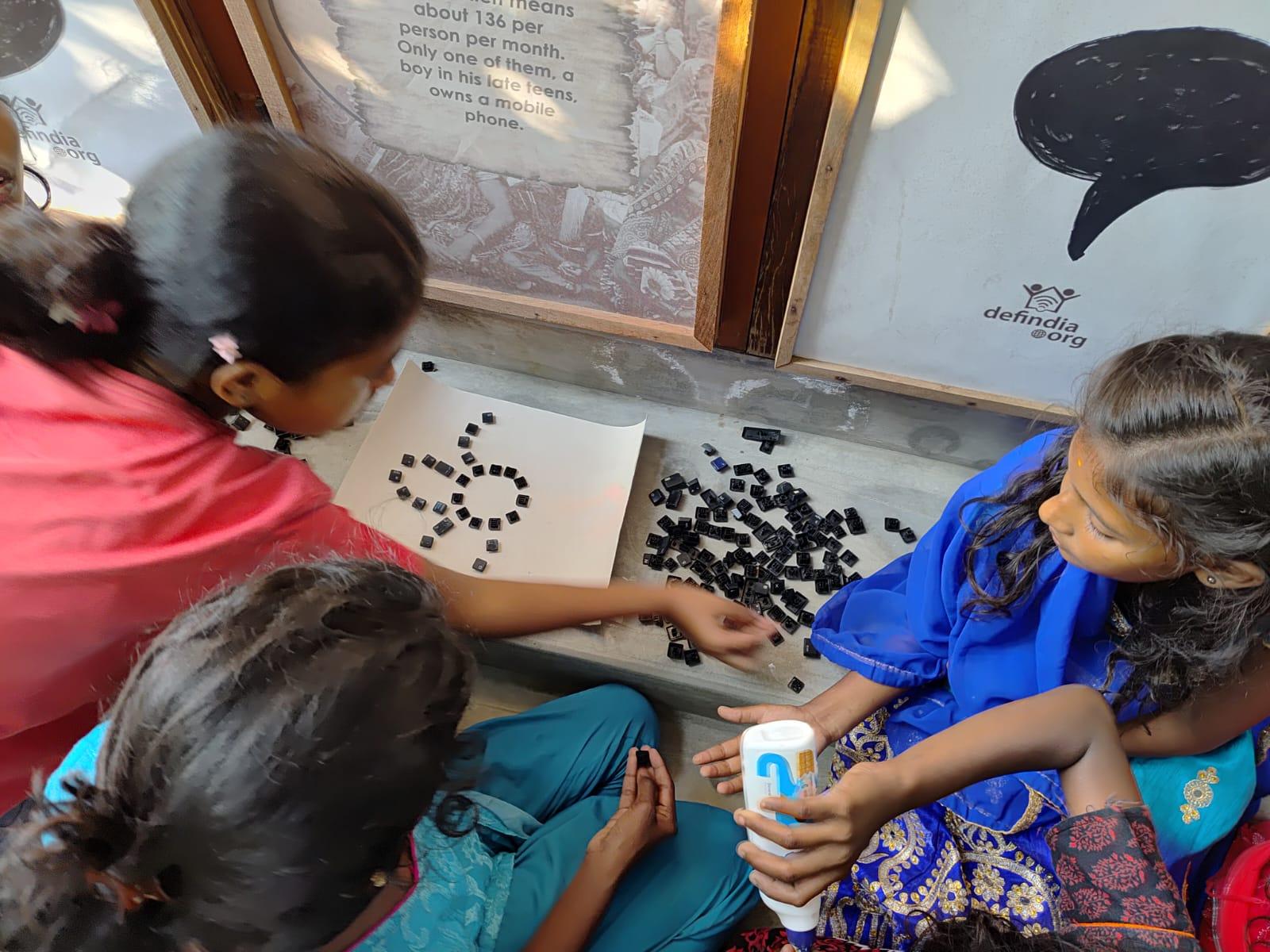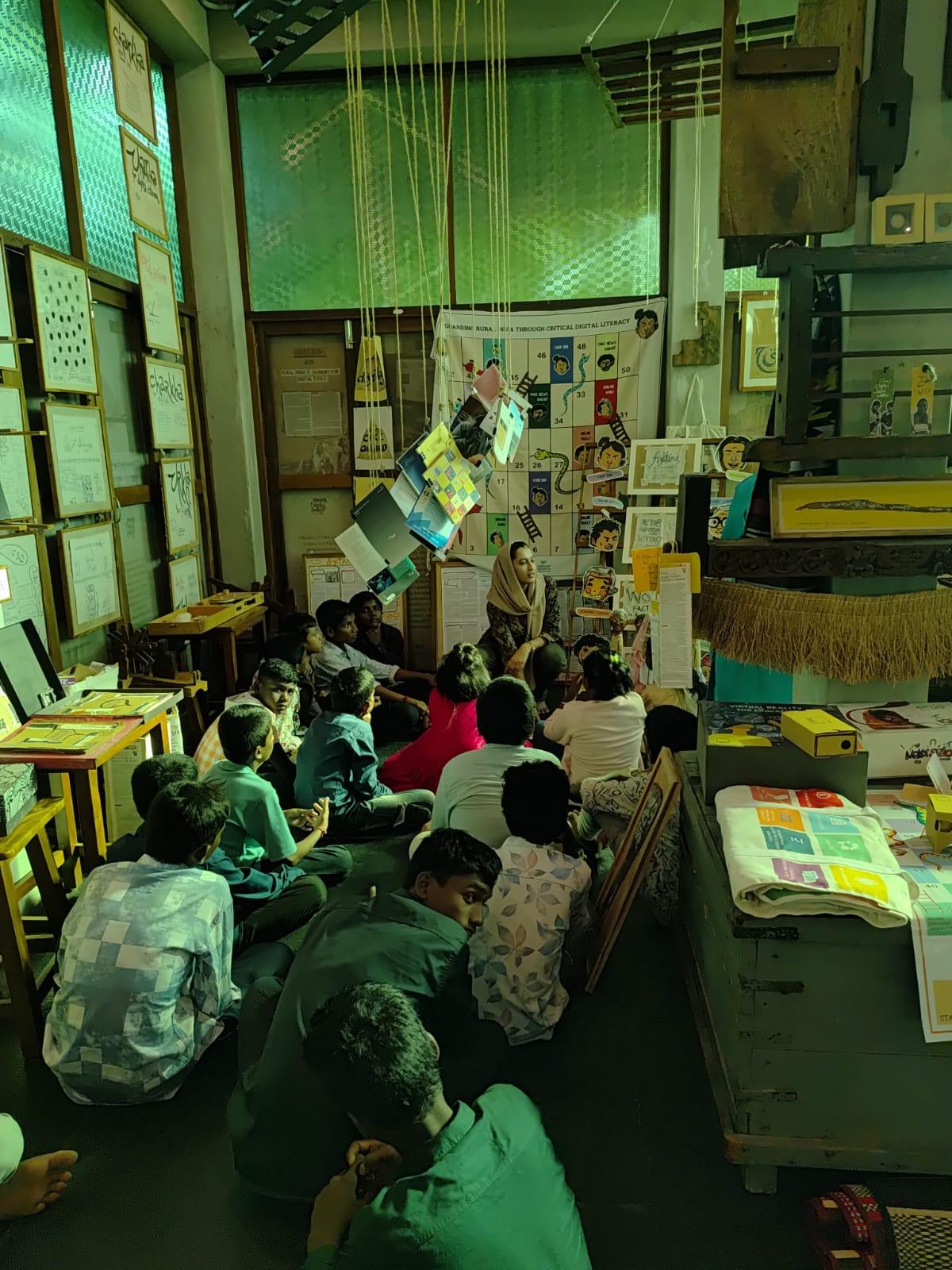 Following the attendance activity, the groups were guided by facilitators to their respective stations, which ran in parallel. Groups 1 and 2 were taken on the Museum Tour, where they explored exhibits tracing the story of the digital world and the growing influence of AI in society, the E-waste recycled pieces, and the repurposed bags.